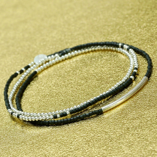 Bracelet multi tours argent et perles Miyuki